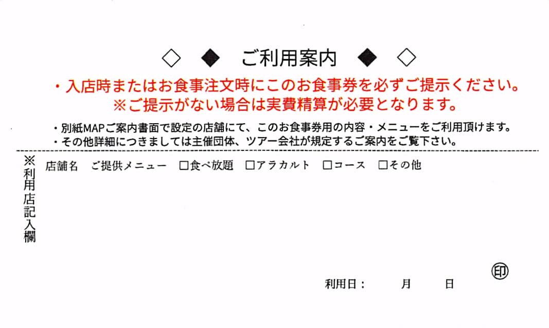 旅行業者様向けフリータイムお食事券ご案内