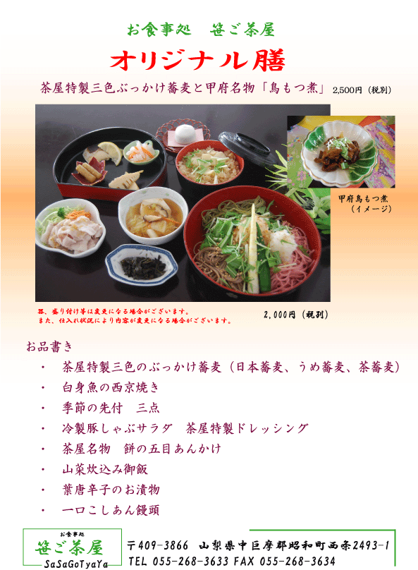 オリジナル膳(三色ぶっかけ蕎麦・鳥もつ煮)