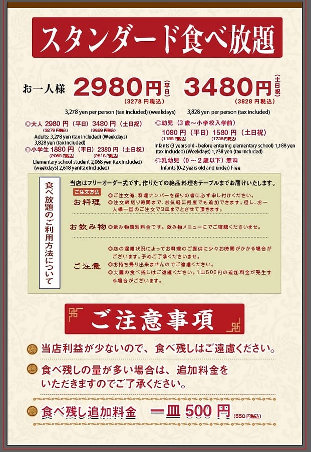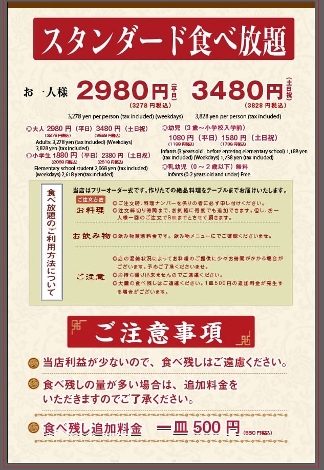 食べ放題注意事項