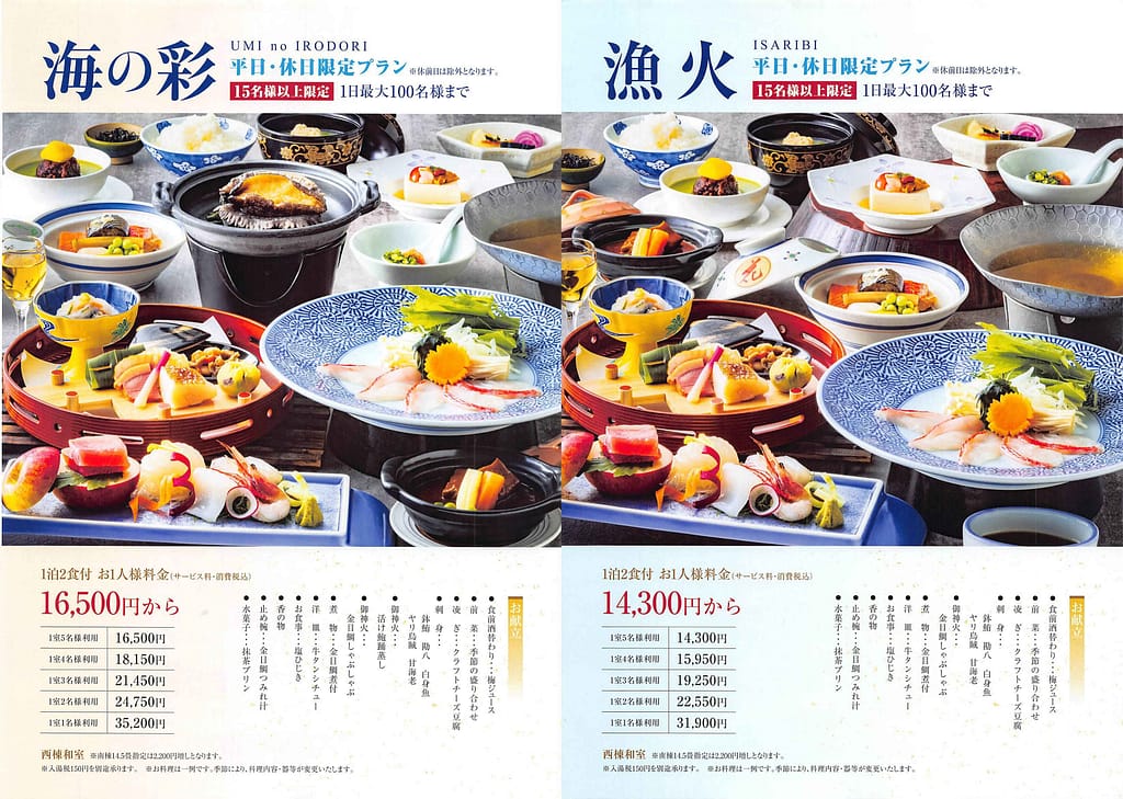堂ヶ島ニュー銀水さんより約3年ぶりに15名様からの団体料理企画プランチラシをお送り頂き、手元に届きました。